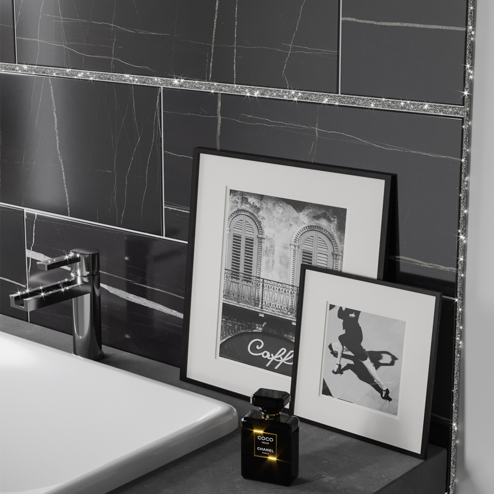 GLITTER L SHAPE TRIMS- Add some Glam and Sparkle to your tile installations with our new contemporary range of Glitter Trims