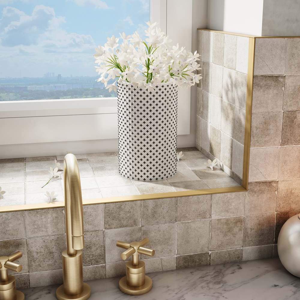 L Shape Brushed Gold- Tile Rite L Shape Contemporary range trims are easy to mitre, making them versatile enough to create features such as; surrounding a window frame, part tiled walls, external corners and surrounding a splashback.