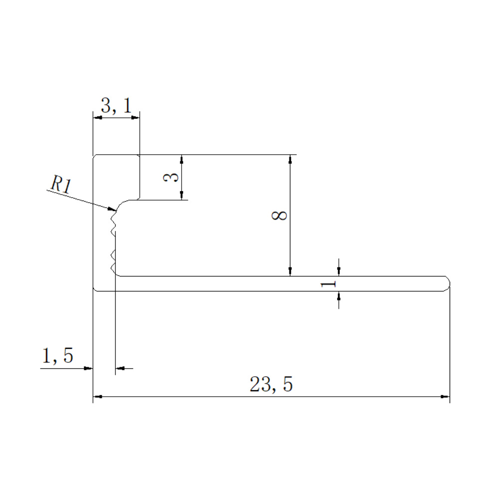 8MM L SHAPED BRIGHT SILVER TRIM